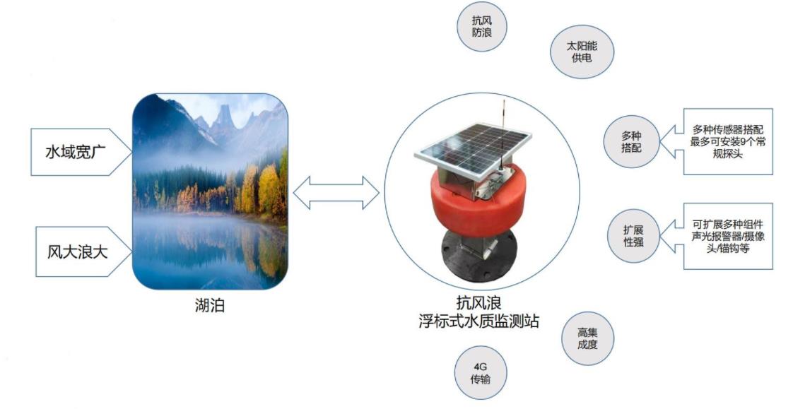 江河、湖泊、水庫等,是水的主要源頭,也是污染物的主要入口,水質監(jiān)測尤為重要。但此類場景復雜多變,水質狀況難以把控,污染程度存在區(qū)域性變化,且系統(tǒng)安裝環(huán)境更為復雜惡劣。需要多種類型的系統(tǒng)根據(jù)環(huán)境情況進行布點搭建。
